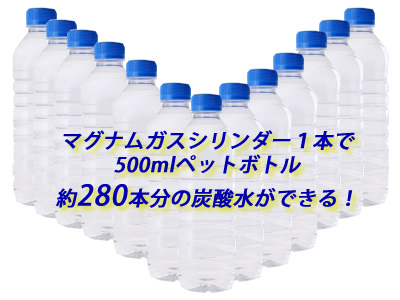 1本のガスシリンダーで500mlのペットボトル約280本分の炭酸水を生成!