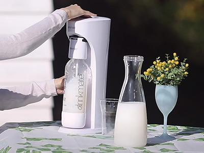 「ドリンクメイト」は、今大人気の炭酸水が手軽に作れる炭酸飲料メーカーです。「ドリンクメイト」は水だけでなく、様々な飲料に炭酸を注入して炭酸飲料にすることができる優れものなのです。※